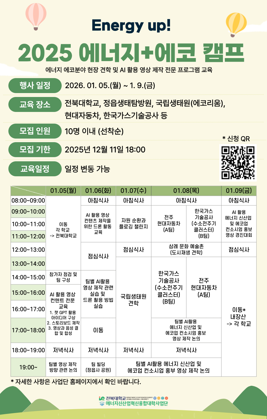 에너지 에코분야 현장 견학 및 AI 활용 영상 제작 전문 프로그램 교육 등이 진행 될 예정입니다.